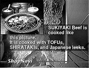 エージェント拡張現実感に基づくこのシステムをShopNaviと呼ぶ。ショップナビは、エージェントがユーザーの見ている方向や対象を認識して、店内と商品の情報案内を、音声、テキストとグラフィックスを用いて行なうシステムである。図3.7-2はこのシステムを使って、ある商品(牛肉)とインタラクションしようとしている様子を、図3.7-3はその商品から得られた調理例(すきやき)の情報が携帯型ディスプレイ上に表示された状態を示している。