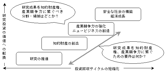 このような問題意識に基づき、本調査研究では、昨年度に引き続き、わが国の情報技術研究開発(IT R&D)に係る重点分野の選択指針を検討する。昨年度の成果である「情報技術を分類する新しい構成領域と基軸」を土台に、研究・開発の活動・成果を商業化・企業化に繋ぎ、産業競争力の向上、ひいては安全な社会と経済発展を図っていくために必要な研究開発推進上の視点・ポイントを明らかにする。