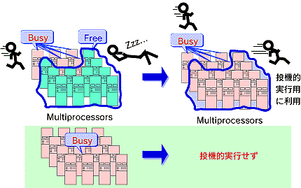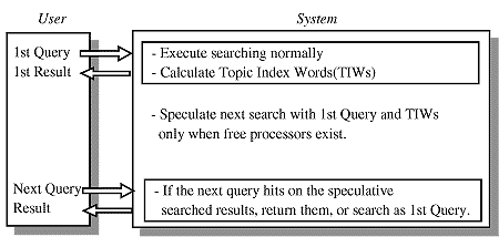このように、投機的情報検索では、並列コンピューティングや分散コンピューティング時に無駄となっている暇なプロセッサ(計算機資源)を有効利用し、ユーザの検索をサポートする仕組みを提供している。