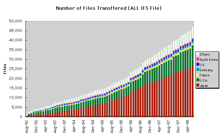 The total number of accesses to IFS including accesses to the files such as "Read-me" has reached to 46,760 at the end of June 1998. The number of accesses only to the program files(excluding "Read-me") is approximately 18,995, which is a half of the total access number.