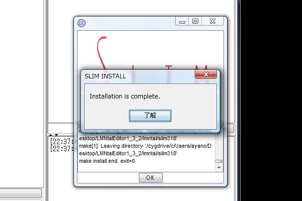 もしここで正しく実行されない場合はcygwinのインストールが正しく出来ていない、またはSLIMのインストールが正しく出来ていない可能性があります。