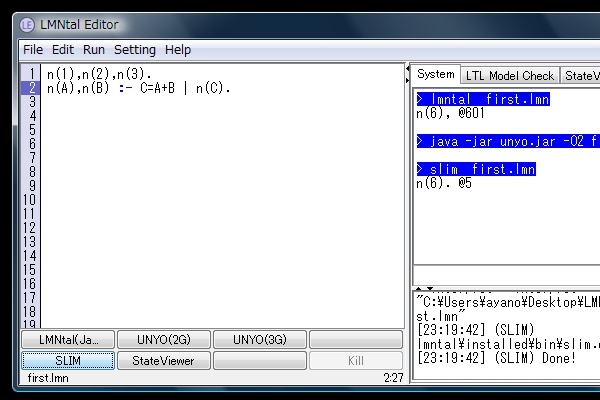 9.LMNtalプログラム実行 †