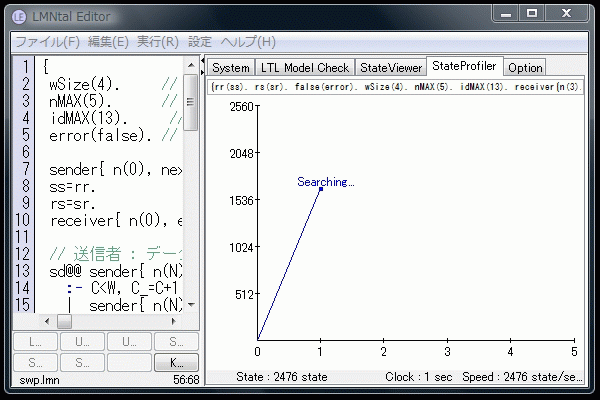 大きいモデルの探索が進行しているかわからない場合は、State Profilerで探索速度を評価することができます。