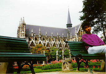 その次は、サン・ミッシェル聖堂。ここには目玉商品的なものはないけど、 トータルとしての雰囲気みたいなものが良かった。ここの建物の 横の銅像の台座によじのぼって写真を撮った。