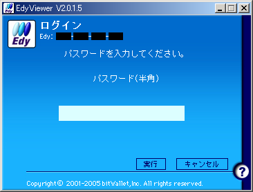サービス登録したパスワードを入れる。Edy番号は個人情報なので隠してます。